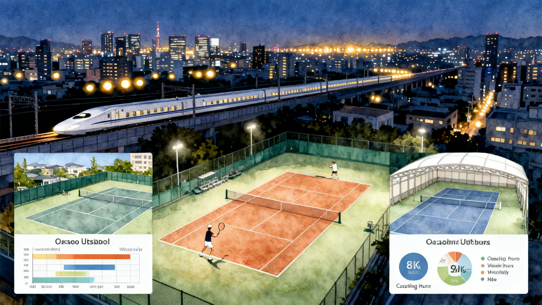 - Osaka’s Utsubo area has a famous city tennis center where juniors and coaches gather for match blocks. Programs nearby tend to be commuter-based with outdoor hard courts and some night-light capacity. Ask coaches about weekday matchplay sets before a weekend event.