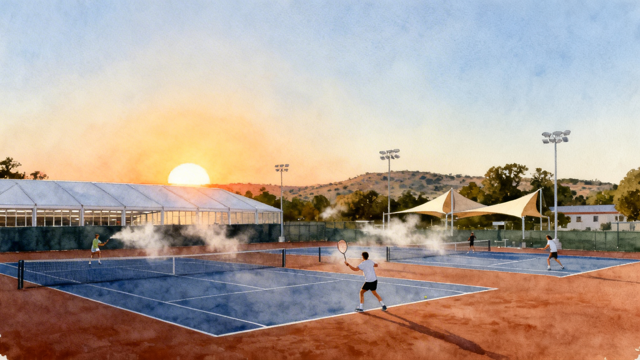 - Scan the court map for shade, fans, misters, and covered options. In July, that is the difference between completing two hours or calling it early.
