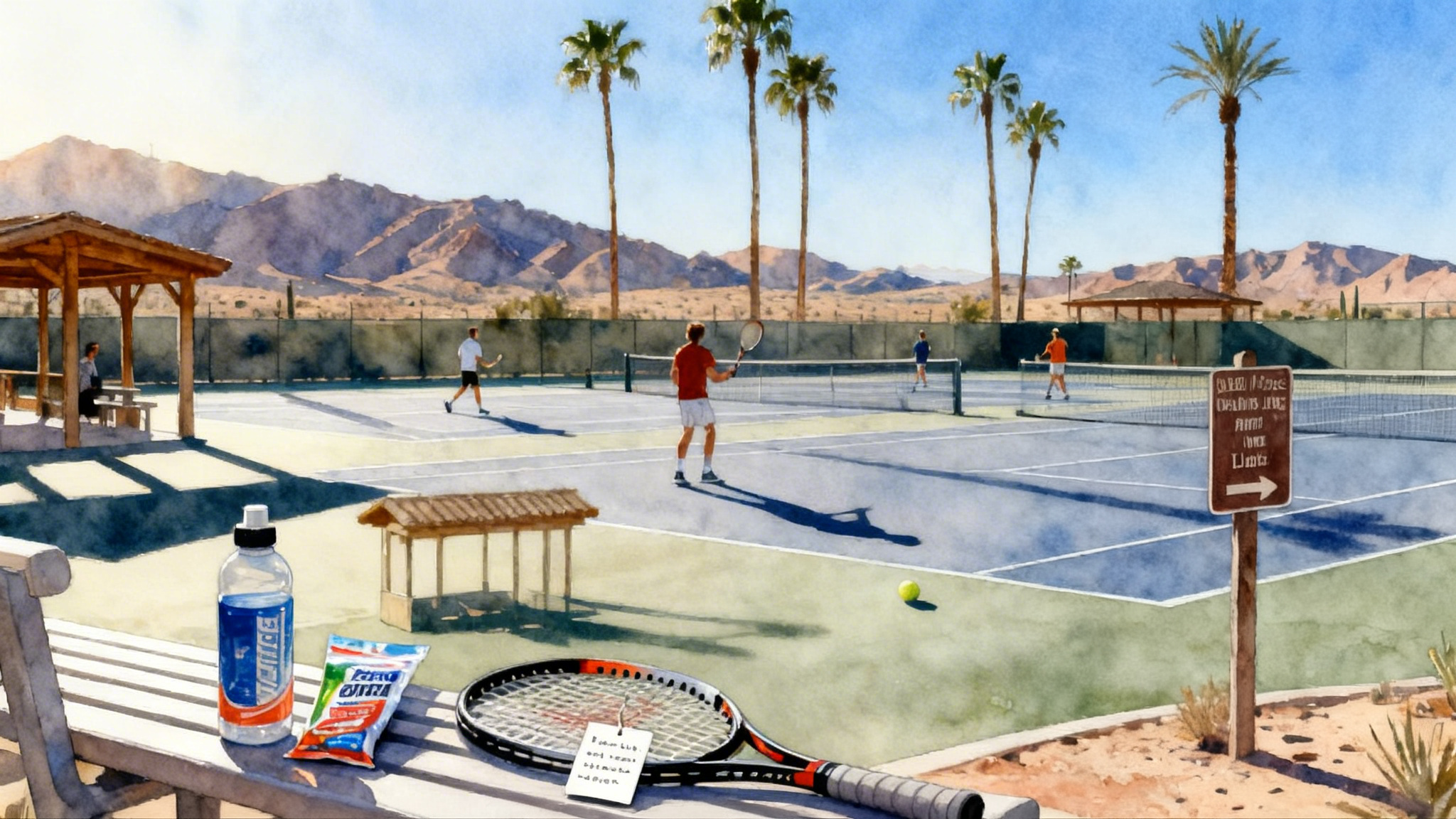- Base in Palm Desert, Rancho Mirage, or Cathedral City and book public courts very early in the day.