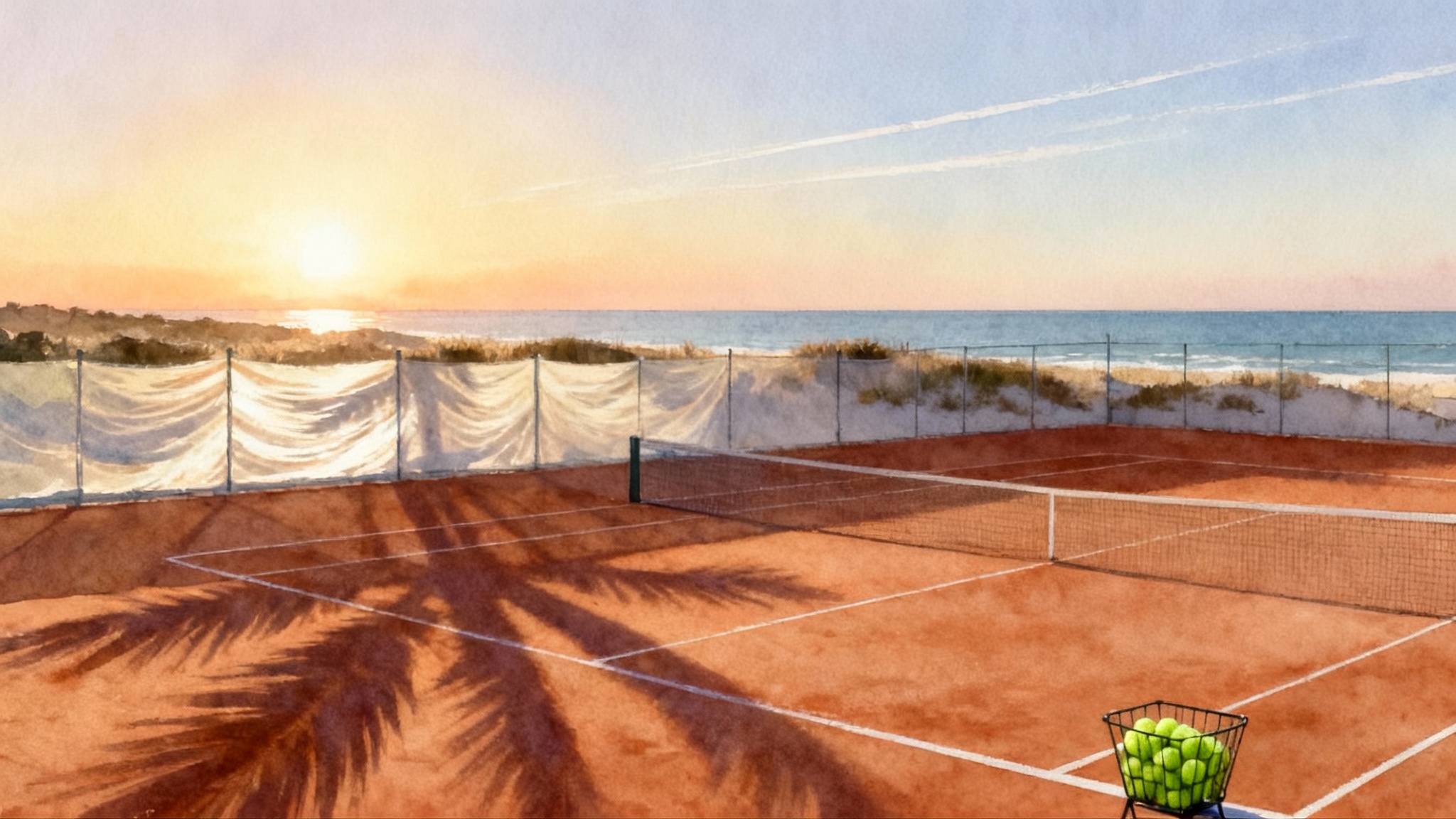 - Red clay in the afternoon extends rallies and raises the footwork demand at lower impact. You practice height, shape, and spin while the day’s breeze adds realistic variables.