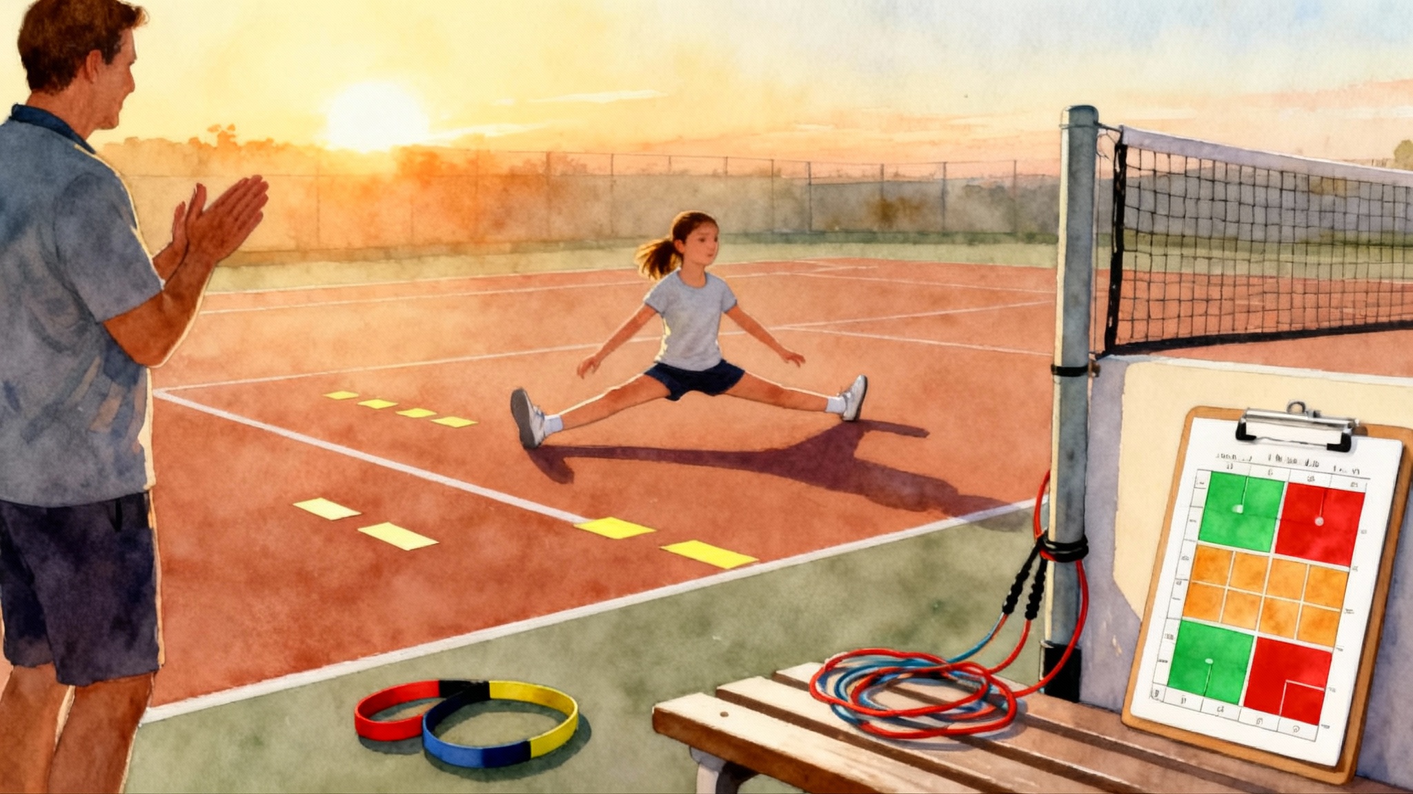 This article gives you a six-week plan that fits into 20-minute sessions, three times per week. It is age-banded for juniors, parents, and adult players, and it includes clear technique cues, at-home strength, simple field tests, surface-specific tweaks, and red-flag checkpoints. To sync braking with on-court rhythm, pair this plan with our split-step timing blueprint.