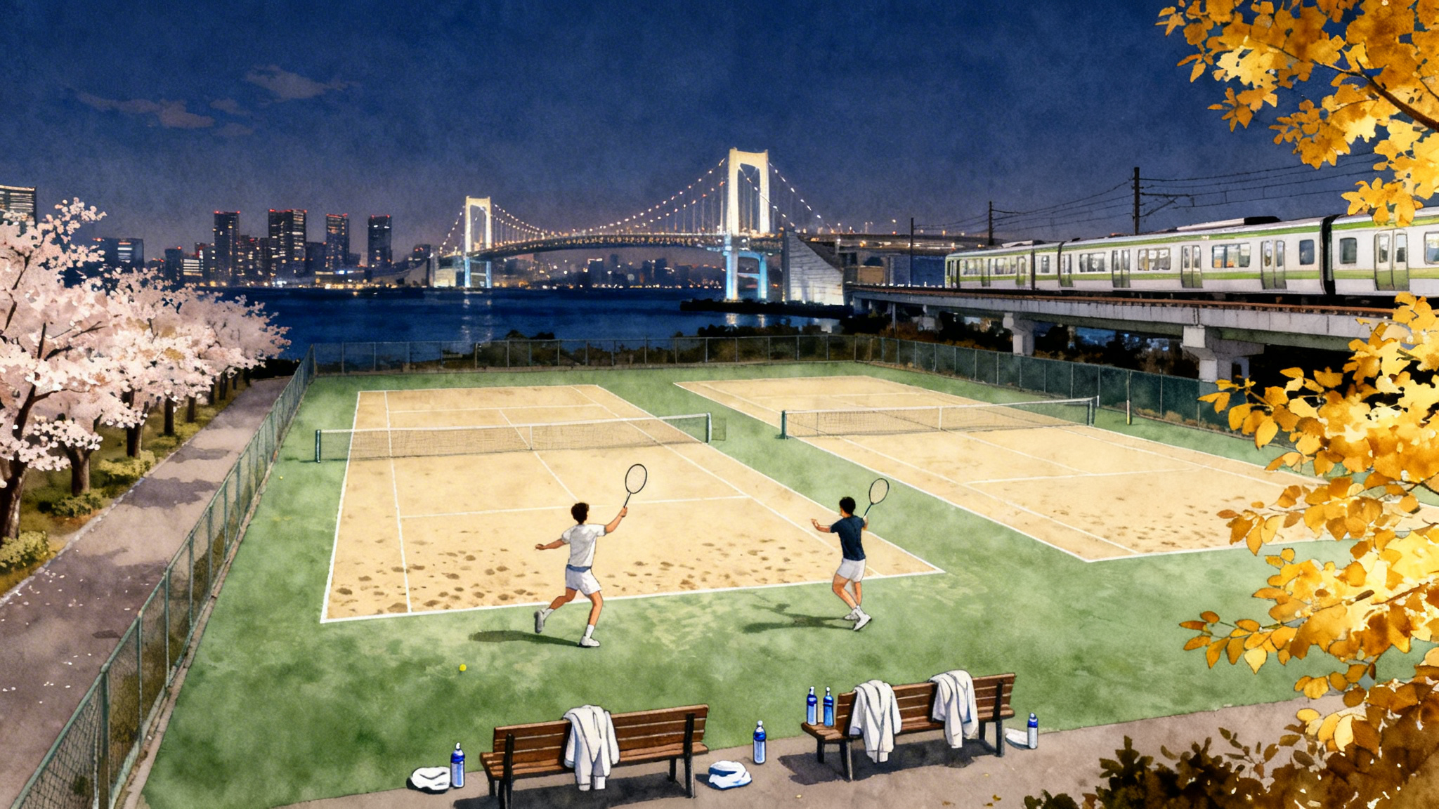 - Public courts to mix in: Ariake Tennis Park’s semi hard courts with lighting, plus riverfront and ward managed courts in Koto and nearby Odaiba