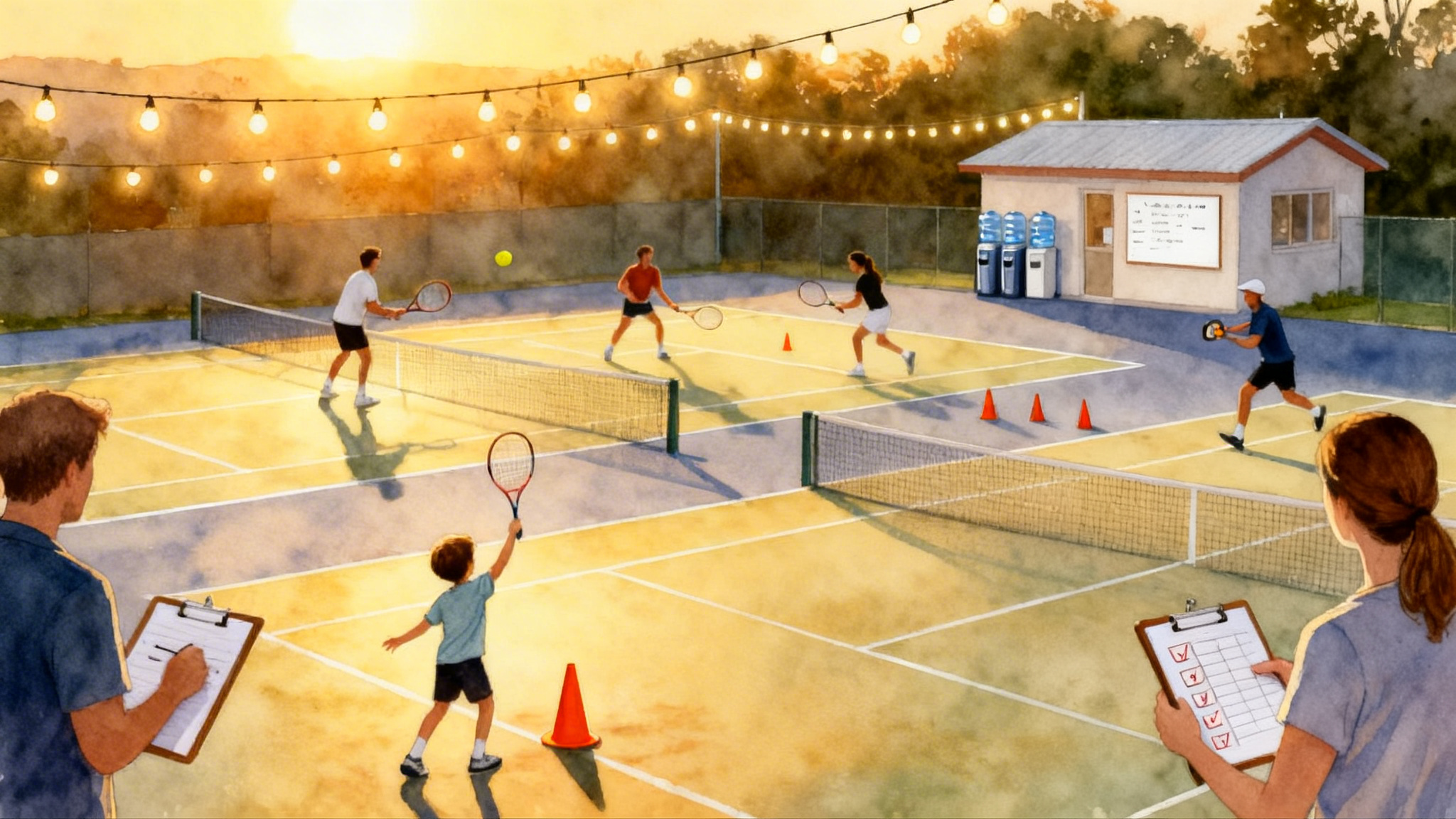 - Twice weekly evening sessions run as verified round robins capped at 90 minutes. Staff groups courts by rating windows so most matchups sit in the 30 to 70 percent probability band.